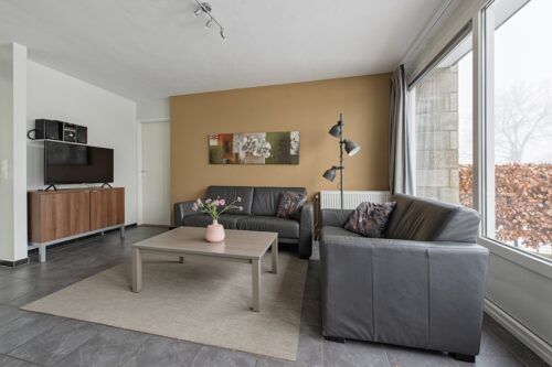 Deze geschakelde, gelijkvloerse bungalow is geschikt voor maximaal 6 personen. Via de hal bereik je de woonkamer. Deze is ingericht met een gezellige zithoek met smart-tv en dvd-speler. De open keuken is voorzien van onder andere een filter koffiezetapparaat, een koffiepadapparaat, een koelkast met vriesvak, een magnetron en een vaatwasser.
