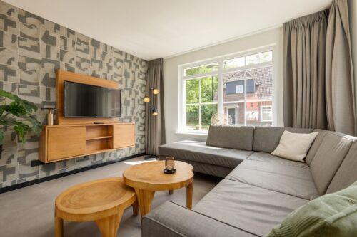 Deze vrijstaande bungalow met verdieping is geschikt voor 5 personen. De woonkamer heeft een zithoek met televisie, een eethoek en een open keuken. Hier vind je onder andere een vaatwasser, een combimagnetron, een filter koffiezetapparaat en een koffiecupapparaat. Boven zijn er 2 slaapkamers. In 1 slaapkamer staat 1 tweepersoonsbed, deze kamer is voorzien van een tv. In de andere slaapkamer staan 3 eenpersoonsbedden. Verder is er op de bovenverdieping een apart toilet en 2 badkamers.1 van de badkamers beschikt over een ligbad, in de andere badkamer vind je een inloopdouche en een sauna. De bungalow heeft daarnaast een berging met wasmachine en -droger en ook beneden is er een apart toilet. In de tuin vind je een terras met tuinmeubilair en 3 zonneligbedden. Parkeren kan naast de woning en het gebruik van wifi is gratis.