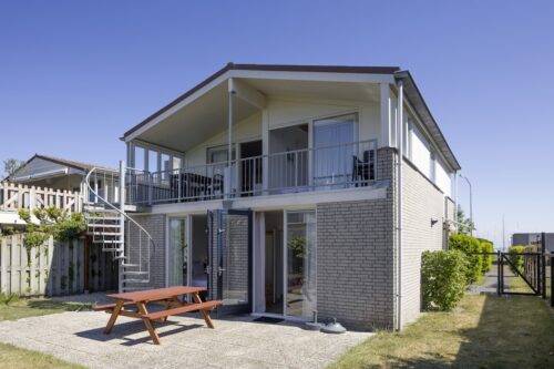 Deze bungalow is vrijstaand en geschikt voor 6 personen. Op de eerste verdieping bevindt zich de woonkamer en een keuken met onder andere een magnetron en koffiezetapparaat. Een slaapkamer met 2 eenpersoonsbedden boven is met voorkeur te boeken. De badkamer op de eerste verdieping is voorzien van een ligbad en een toilet. Via de woonkamer en slaapkamer heb je toegang tot het balkon. Op de benedenverdieping vind je 2 slaapkamers met beide 2 eenpersoonsbedden. De tweede badkamer is voorzien van een douchecabine en er is een apart toilet en berging. Het terras beneden is voorzien van tuinmeubilair. Je kunt gratis gebruik maken van wifi.