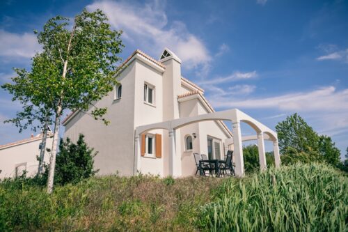 De geschakelde bungalow is geschikt voor 4 personen. In de woonkamer is vloerverwarming aanwezig. De woonkamer is ingericht met een zithoek en een eethoek. Naast het standaard keukeninventaris zijn er onder andere een vaatwasser, magnetron en koffiecupapparaat aanwezig. De 2 slaapkamers met elk 2 eenpersoonsbedden bevinden zich boven. De badkamer beneden beschikt over een douche, wastafel en toilet. Een tweede toilet bevindt zich boven. De bungalow heeft een terras met tuinmeubilair en een parasol. Er is een inpandige berging. Parkeren kan op de centrale parkeerplaats.