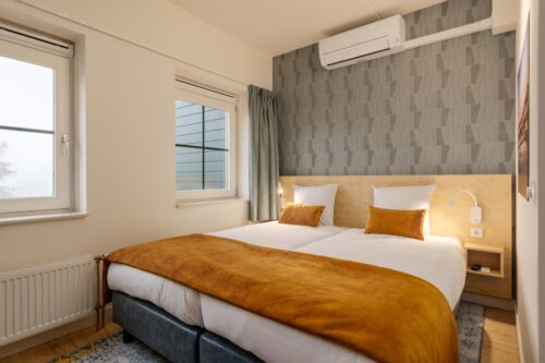 Knusse hotelkamer voor 2 personen. De kamer is ingericht met 2 eenpersoonsbedden, een televisie, een klein koelkastje, een waterkoker en een koffiecupapparaat. De matrassen hebben een afmeting van 80 bij 200 cm. De televisie beschikt over streamfuncties. Dit maakt het mogelijk om apps van je telefoon of tablet direct op het scherm van de televisie te bekijken. Je maakt hierbij gebruik van je eigen accounts. In de badkamer vind je een ligbad met douche, een wastafel en een föhn. Ook he toilet bevindt zich in de badkamer. De verduisterende gordijnen maken het mogelijk om lekker lang uit te slapen. De airco zorgt voor een aangenaam klimaat. Tijdens je verblijf maak je gratis gebruik van wifi.