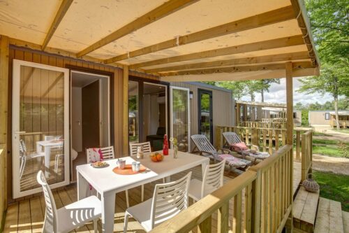Deze gelijkvloerse cottage voor 4 personen heeft een woonkamer met zithoek en televisie. In de open keuken vind je onder andere een vaatwasser, magnetron en een filter koffiezetapparaat. Er zijn 2 slaapkamers, waarvan 1 met een tweepersoonsbed en 1 met 2 eenpersoonsbedden. Daarnaast zijn er 2 badkamers met een douche en 2 aparte toiletten. De cottage heeft verder een overdekt terras met tuinmeubilair en 2 zonneligbedden. Parkeren kan op de centrale parkeerplaats.