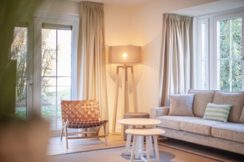 In deze grote bungalow kun je met maximaal 12 volwassenen logeren. Op 2 slaapkamers is voldoende ruimte voor een extra campingbedje. De bungalow heeft een gezamenlijke entree. Vervolgens bestaat het verblijf uit 3 aparte woningen, die op de benedenverdieping met tussendeuren met elkaar verbonden zijn. Zo geniet je van voldoende privacy, maar vier je toch samen vakantie. Via de hal met apart toilet bereik je de woonkamer. In totaal zijn er 3 woonkamers met vloerverwarming en openslaande deuren naar het terras. Elke woonkamer heeft een open keuken met een koffiezetapparaat, een waterkoker, een koelvriescombinatie, een combimagnetron en een vaatwasser. Via de trap zijn steeds 2 slaapkamers en 1 badkamer te bereiken. Op de bovenverdieping zijn geen tussendeuren aanwezig. In totaal zijn er 6 slaapkamers. Elke slaapkamer beschikt over 2 eenpersoonsbedden. De bovenverdieping telt in totaal 3 badkamers, elk met een wastafel en een douchecabine. Ook is er in elke woning een apart toilet op de bovenverdieping aanwezig. Elke woning heeft in de tuin een eigen terras met tuinmeubilair. De totale tuin is omheind, zodat kinderen veilig buiten kunnen spelen. De bungalow is kindvriendelijk dankzij de aanwezigheid van 3 campingbedjes, 3 kinderstoelen, 3 boxen, 3 kinderbadjes, traphekjes boven, afgeschermde stopcontacten en 1 bolderwagen. Je maakt gratis gebruik van wifi.