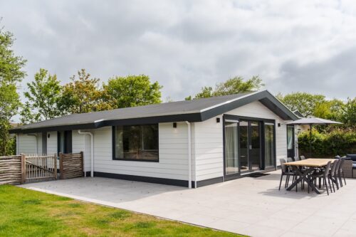 Deze luxe, geschakelde houten bungalow is geschikt voor 8 personen. De bungalow is volledig gelijkvloers en heeft een moderne inrichting. De ruime, gezellige woonkamer is ingericht met een zithoek met televisie en een eethoek. De televisie beschikt over streamfuncties. Dit maakt het mogelijk om apps van je telefoon of tablet direct op het scherm van de televisie te bekijken. Je maakt hierbij gebruik van je eigen accounts. De open keuken is ingericht met onder andere een inductie kookplaat, een vaatwasser, een combimagnetron, een koffiezetapparaat en een waterkoker. Er zijn 4 slaapkamers. Elke slaapkamer is ingericht met 2 eenpersoonsbedden. De bungalow heeft 2 badkamers. De grootste slaapkamer heeft een aangrenzende badkamer met een dubbele wastafel, een douche en een toilet. Via de hal is de andere badkamer bereikbaar. Deze is ingericht met een wastafel en een douche. Tegenover deze badkamer is een apart toilet aanwezig. De tuin ligt op het zuiden en heeft een groot terras. Een loungeset en 4 zonneligbedden maken het mogelijk om optimaal van het mooie weer te genieten. Bij de bungalow is ruimte om maximaal 3 auto’s te parkeren. Ook is er een laadpaal voor elektrische auto’s aanwezig. Tijdens je vakantie maak je gratis gebruik van wifi.