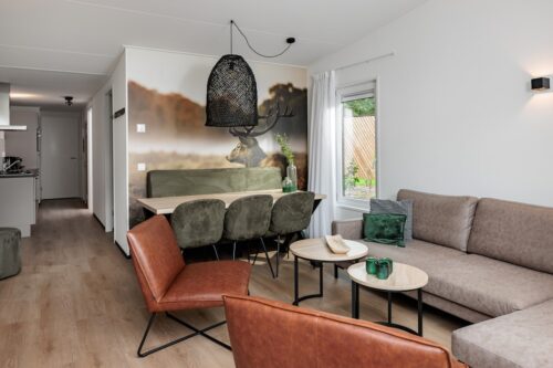 Deze gelijkvloerse, vrijstaande lodge is geschikt voor maximaal 6 personen. In de lodge is vloerverwarming aanwezig en de woonkamer is voorzien van een televisie met streamfuncties. Dit maakt het mogelijk om apps van je telefoon of tablet direct op het scherm van de televisie te bekijken. Je maakt hierbij gebruik van je eigen accounts. In de keuken bevinden zich – naast de standaard inventaris - een vaatwasser, een koelkast met vriesvak, een koffiecupapparaat en een combimagnetron. De lodge beschikt over 3 slaapkamers. 2 slaapkamers zijn beide voorzien van 2 eenpersoonsbedden en de derde slaapkamer beschikt over 1 stapelbed. In een van de slaapkamers is ruimte om een campingbedje voor een baby te plaatsen. Daarnaast is er in de lodge 1 badkamer aanwezig met vloerverwarming, een toilet en inloopdouche. De woning heeft een eigen traditionele sauna. Buiten vind je een tuin met terras en tuinmeubilair. Parkeren is mogelijk op de centrale parkeerplaats en je kunt gratis gebruikmaken van wifi.