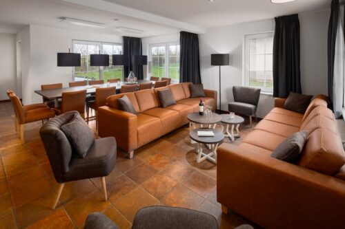 Deze vrijstaande familievilla is geschikt voor 14 personen. De woonkamer met eethoek en televisie grenst aan de open keuken met vaatwasser, filter koffiezetapparaat en magnetron. Beneden zijn 2 slaapkamers met eenpersoonsbedden en 1 badkamer met een douche. In de berging vind je een wasmachine en -droger en er is een apart toilet in de hal. Boven zijn 4 slaapkamers met eenpersoonsbedden en 3 badkamers, waarvan 1 met een ligbad en 1 met een traditionele sauna. Ook vind je boven een apart toilet. Buiten zijn 2 parkeerplaatsen en een tuin met gemeubileerd terras. Je kunt gratis gebruikmaken van wifi.