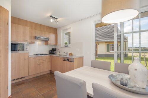 Deze vrijstaande bungalow is geschikt voor 6 personen. Beneden is een woonkamer met eethoek en een open keuken. Ook is er 1 slaapkamer met 2 eenpersoons boxspringbedden en 1 badkamer een douche in bad. Er is een apart toilet in de gang. Via de openslaande deuren kom je op het gemeubileerde terras. Boven zijn 2 slaapkamers, beide met 2 eenpersoons boxspringbedden. Ook is er 1 badkamer met een douche en nog een apart toilet. Je kunt gratis gebruikmaken van wifi.