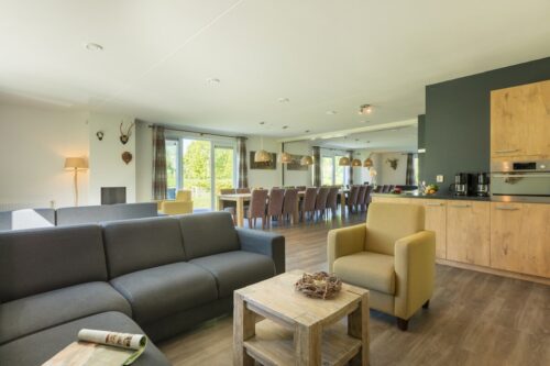 Op de begane grond van dit grote familie huis tref je 2 ruime hallen met twee aparte toiletten en 2 bergingen met ieder een wasmaschine en wasdroger. Er is een ruime gezellig ingerichte woonkamer met 2 zitgedeeltes met sfeerhaard, tv en stereo. De 2 ruime keukens beschikken over ieder een vaatwasser en combimagnetron . Er zijn twee slaapkamers met aparte bedden en TV en badkamer met douche en toilet en suite. Op de eerste verdieping zijn de overige 10 slaapkamers en 4 badkamers.