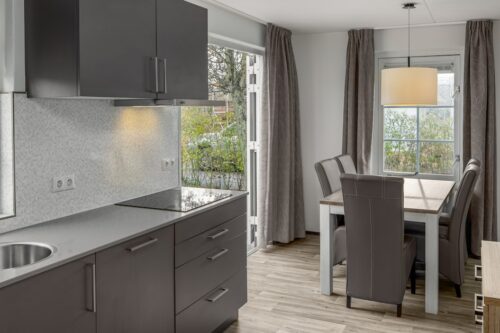 Vernieuwde, vrijstaande bungalow, geschikt voor 4 personen en een baby/peuter. Beneden in de woonkamer vind je een zithoek met televisie en de eethoek. Aangrenzend een open keuken die beschikt over onder andere een vaatwasser, filter koffiezetapparaat en combimagnetron. In de gang is een apart toilet. Boven bevinden zich 2 slaapkamers met 2 eenpersoonsbedden, en een kinderslaapkamer met ledikant. De badkamer is voorzien van een ligbad en douchecabine.