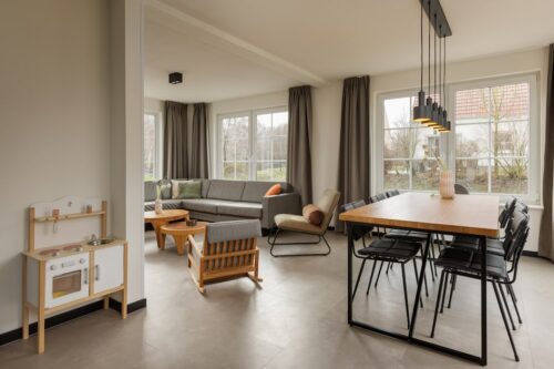 Deze vrijstaande bungalow is geschikt voor maximaal 4 volwassenen en 2 kinderen tot en met 12 jaar. Ben je fan van Koos? Dan is dit een ideaal vakantieverblijf. Via de hal met apart toilet bereik je de lichte woonkamer met vloerverwarming. De televisie beschikt over streamfuncties. Dit maakt het mogelijk om apps van je telefoon of tablet direct op het scherm van de televisie te bekijken. Je maakt hierbij gebruik van je eigen accounts. De zithoek is lekker ruim, zodat er voor kinderen genoeg ruimte is om te spelen. Er is ook een kindertafel met 2 stoelen en een speelgoedkeukentje aanwezig. De open keuken is ingericht met onder andere een vaatwasser, een combimagnetron, een waterkoker en een koffiezetapparaat. De 3 slaapkamers bevinden zich boven. In 1 slaapkamer staat 1 tweepersoonsbed, deze kamer is voorzien van een tv. In 1 slaapkamer staan 2 eenpersoonsbedden. De 3e slaapkamer is in Koos stijl ingericht. Hier staan 2 kinderbedden. De matrassen van de kinderbedden hebben een afmeting van 180 bij 90 cm. Het vakantieverblijf heeft 1 badkamer met vloerverwarming, een inloopdouche, een ligbad en een wastafel. Boven is er ook een apart toilet aanwezig. Op het terras is tuinmeubilair aanwezig, en ook vind je er 2 zonneligbedden. De bungalow beschikt verder ook over een traphekje boven. Ook is er een bolderwagen en zijn de stopcontacten afgeschermd. De berging is zowel via binnen als buiten bereikbaar. Handig om de kinderfietsjes te stallen. Parkeren kan bij het vakantieverblijf en je maakt gratis gebruik van wifi.
