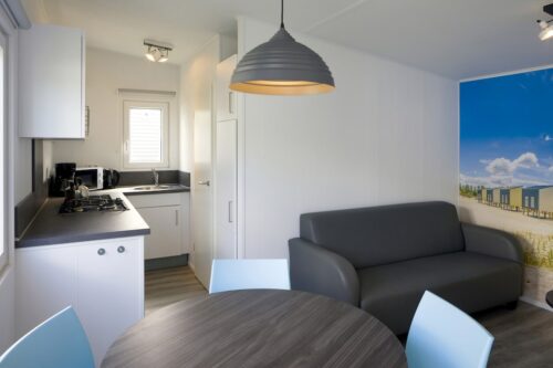 Dit chalet is geschikt voor 4 personen. Er is een woonkamer met televisie en een keuken met onder andere een magnetron. Er zijn in totaal 2 slaapkamers met elk 2 eenpersoonsbedden. Het chalet heeft een badkamer met douche en toilet. Het terras is voorzien van tuinmeubilair. Je kunt gratis gebruikmaken van wifi.