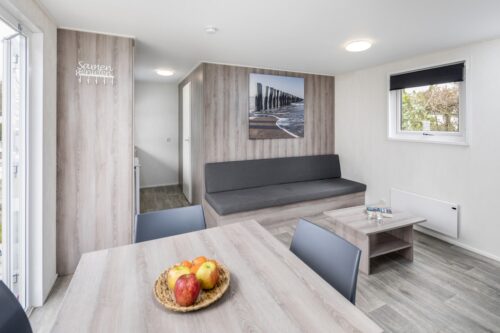 Dit vrijstaande chalet is geschikt voor 3 volwassenen en 1 baby. Het chalet is met een kinderledikant, kinderstoel en tuinomheining kindvriendelijk ingericht. Indeling: keuken met vaatwasser, woongedeelte, badkamer en 1 slaapkamer met 2 eenpersoonsbedden en 1 slaapkamer met 1 eenpersoonsbed. Op het terras is tuinmeubilair aanwezig. Je kunt gratis gebruikmaken van wifi.