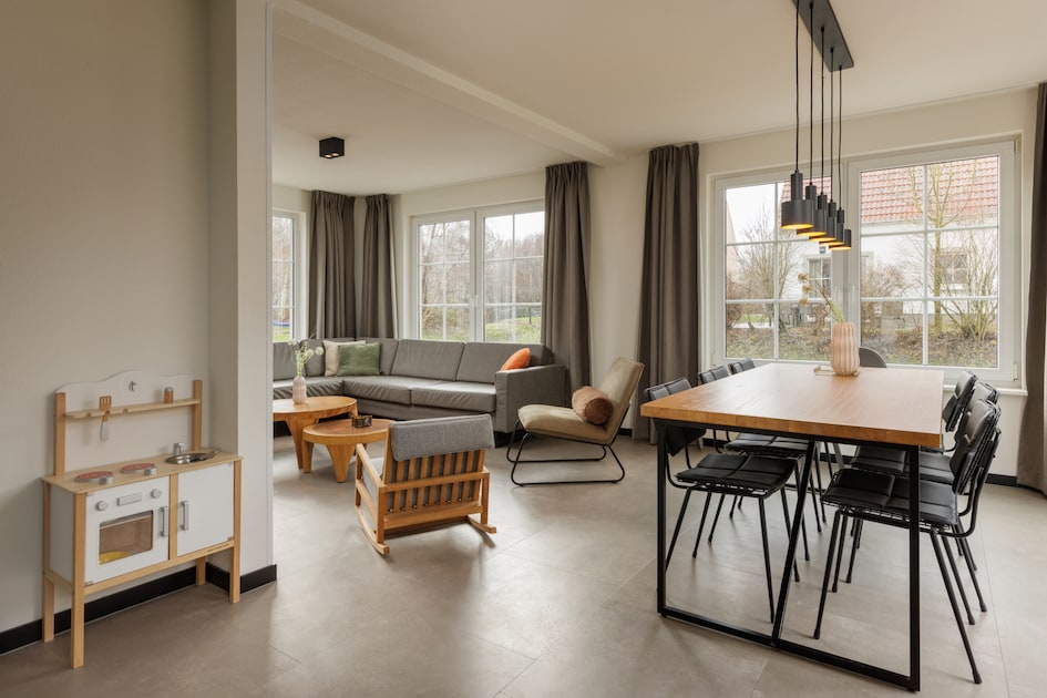 Lees meerDeze vrijstaande bungalow is geschikt voor 9 personen. Via de hal met apart toilet bereik je de lichte, ruime woonkamer…