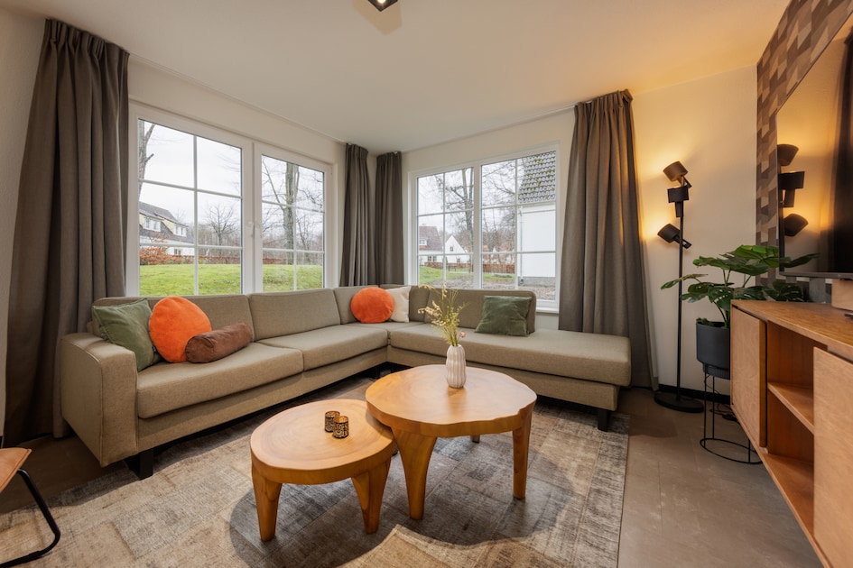 Lees meerDeze twee-onder-1-kap bungalow is geschikt voor 4 personen. Via de hal met apart toilet bereik je de ruime woonkamer met…
