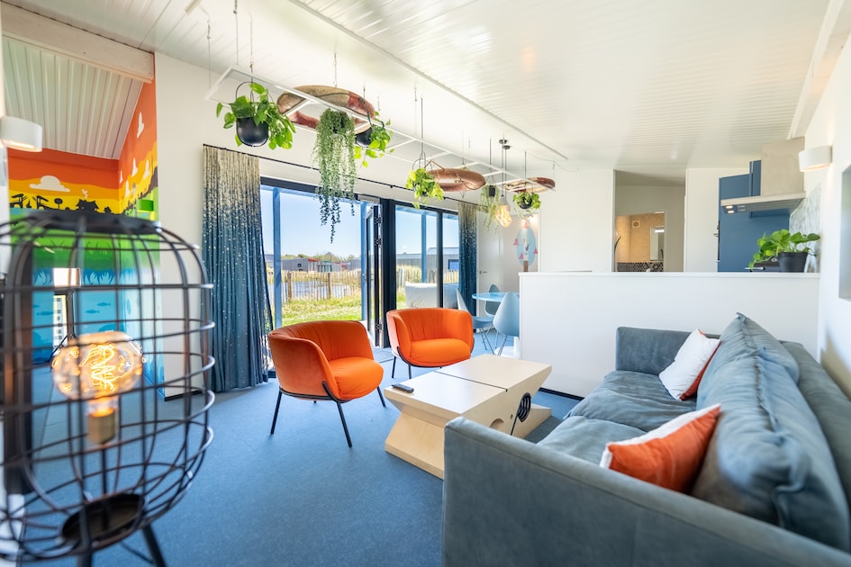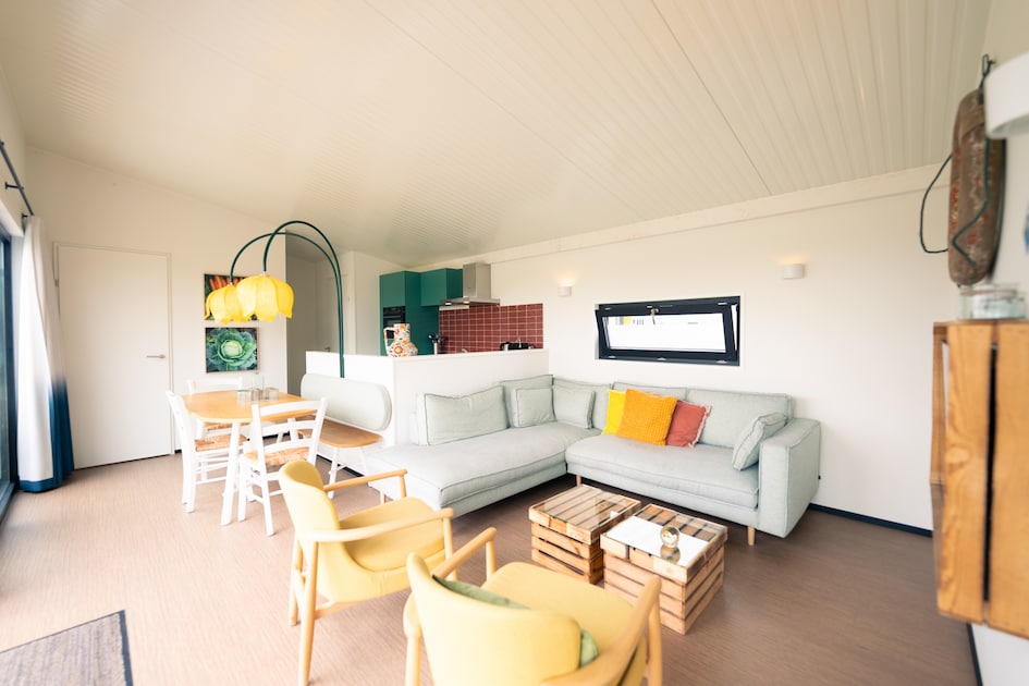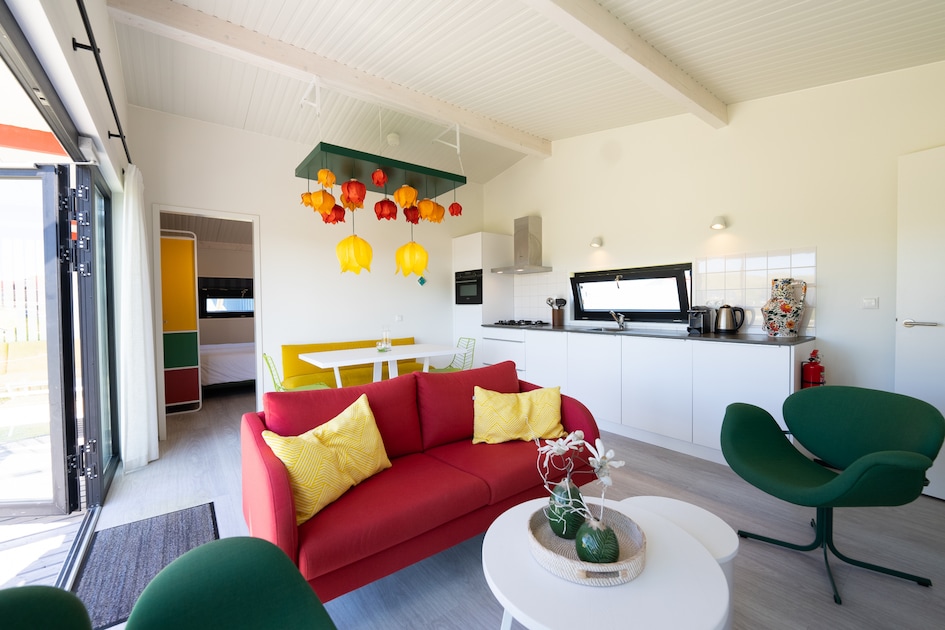 Lees meerDeze vrijstaande lodge is volledig ingericht in het thema ‘Kleurrijk Holland’ en geschikt voor 4 personen. In de woonkamer is…