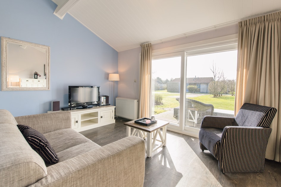 Lees meerVrijstaande, gelijkvloerse lodge voor 4 personen. De woonkamer is sfeervol ingericht met een modern interieur. De keuken heeft een vaatwasser,…