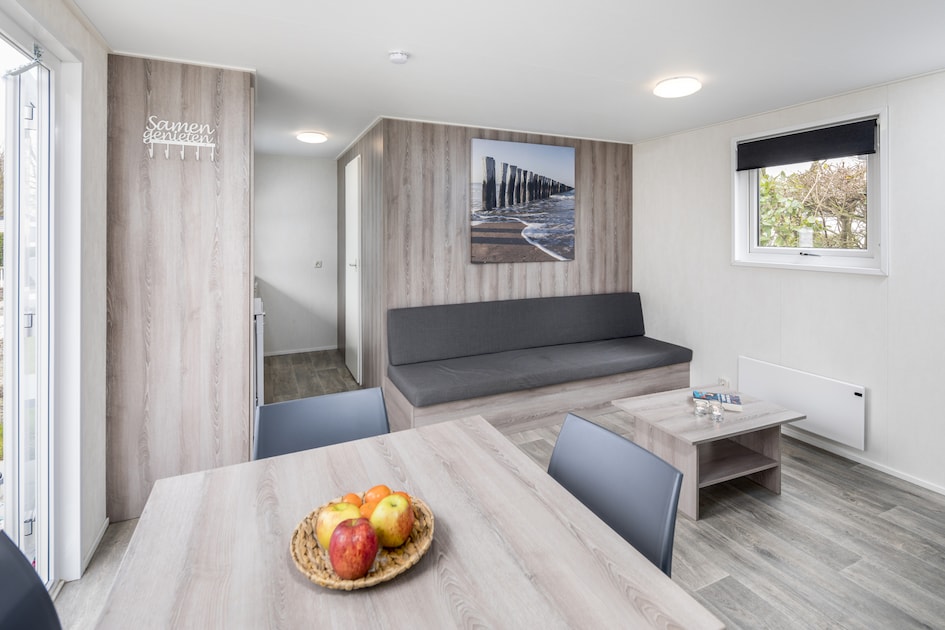 Dit vrijstaande chalet is geschikt voor 4 personen. Het chalet beschikt over een keuken, woonkamer met zithoek, badkamer met infraroodsauna,…