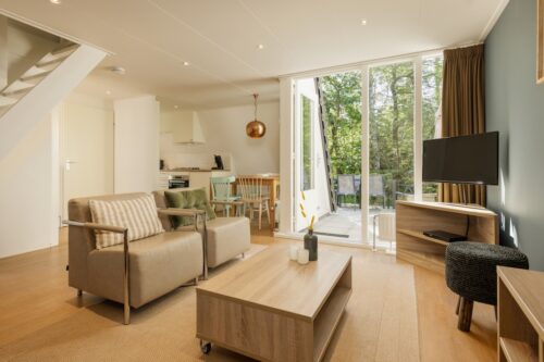 Deze vrijstaande villa is geschikt voor maximaal 4 personen. De woonkamer heeft een zit- en eethoek en een tv. De open keuken beschikt onder andere over een vaatwasser, koelkast met vriesvak, combimagnetron, koffiepadapparaat, filter koffiezetapparaat en waterkoker. Beneden vind je ook de badkamer met wastafel, inloopdouche en toilet. Op de eerste verdieping bevinden zich 2 slaapkamers, beide voorzien van 2 eenpersoonsbedden. Buiten is er een tuin met tuinmeubilair. Er is een berging aanwezig met twee oplaadpunten voor elektrische fietsen en je kunt in de villa gebruik maken van gratis wifi.