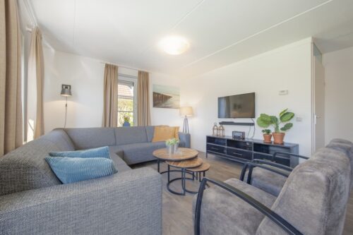 Deze geschakelde villa is geschikt voor 8 personen. De woonkamer heeft een aparte eethoek en de open keuken is onder andere voorzien van een magnetron en filter koffiezetapparaat. Er zijn 4 slaapkamers, waarvan 1 op de begane grond, met elk 2 boxspringbedden. Ook vind je op zowel de begane grond als de eerste verdieping een badkamer en is er een apart toilet in de hal. Verder heeft de villa een terras met tuinmeubilair en kunt u gratis gebruikmaken van wifi. Er is parkeergelegenheid bij de woning.