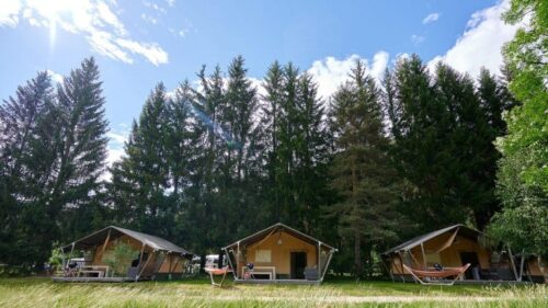 Gelegen in een vallei, omringd door groene landschappen, ligt Villatent Camping De Vaubarlet. Deze familiecamping in het Franse Sainte-Sigolène biedt een oase van rust. Geniet op de camping van waterpret bij de rivier die over het terrein stroomt, in het zwembad of aan de gezellige bar. Vanuit de camping kunt u de mooie natuurrijke streek en verschillende steden ontdekken.