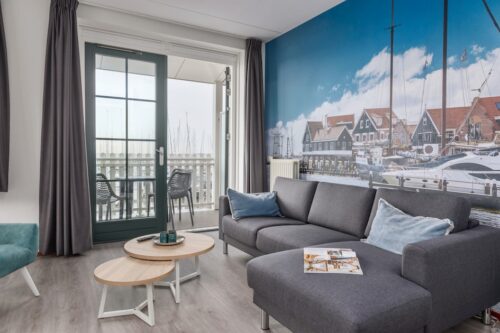 Deze geschakelde bungalow is geschikt voor 4 personen. Op de eerste verdieping vind je de woonkamer met smart-tv en een keuken met onder andere een koffiepadapparaat, magnetron en vaatwasser. Ook is er een apart toilet. Vanuit de woonkamer stap je het balkon op, met tuinmeubilair en zicht op de jachthaven. Op de tweede verdieping zijn 2 slaapkamers met elk 2 eenpersoonsbedden en een badkamer met douche. Je maakt gratis gebruik van wifi.