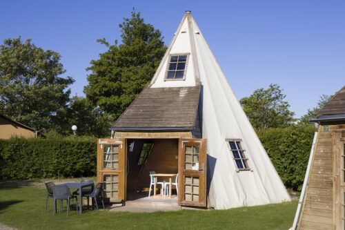 De Wigwam is geschikt voor 4 personen en is volledig van hout. Er is een eethoek en een keuken met koelkast, waterkoker en filter koffiezetapparaat. Beneden zijn 2 bedden en boven is een kleine slaapzolder met nog 2 slaapplaatsen. Ook heb je de beschikking over tuinmeubilair en maak je gratis gebruik van wifi.