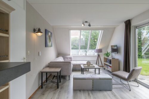 Deze vrijstaande bungalow is geschikt voor 4 personen. Beneden vind je een moderne woonkamer met zithoek en Chromecast-televisie, en een open keuken met eethoek. De keuken beschikt over onder andere een vaatwasser, filter koffiezetapparaat en een magnetron. Vanuit de gang heb je toegang tot het toilet, en de badkamer met douche. Boven bevinden zich 3 slaapkamers, waarvan 1 met 2 eenpersoonsbedden en 2 met 1 eenpersoonsbed. Ook vind je hier een tweede badkamer met ligbad.